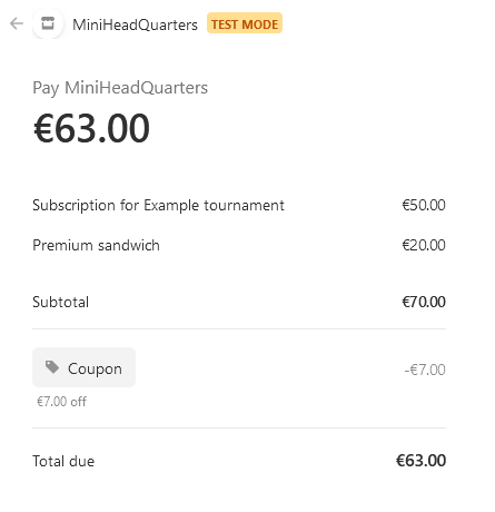 Finally, during Stripe checkout, options will be listed as discounts (for negative amount options) or item lines (for positive amount options).