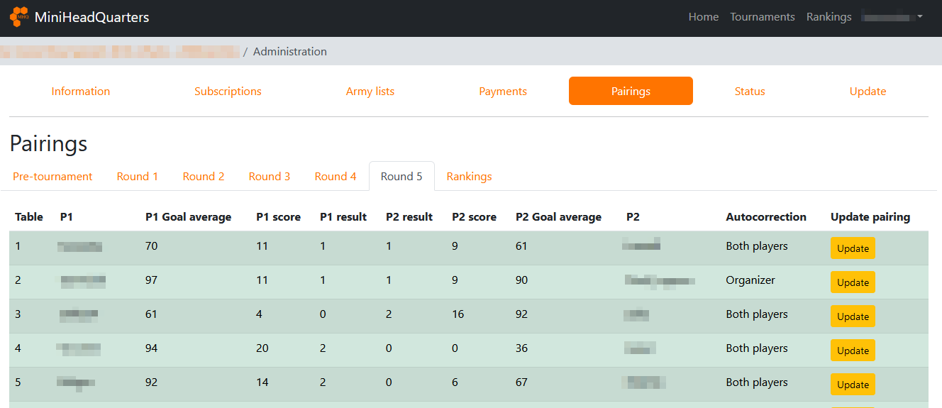In the Update tab, you can change some information of your tournament.